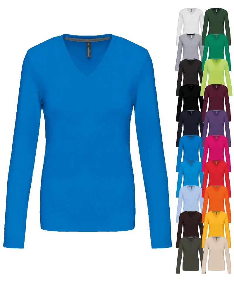 Dámske tričko s dlhým rukávom a výstrihom do V K382 Karibanskladom - dodanie do 2 až 5 dní > 100 Ks9,89 €/ Ks8,04 € bez DPH