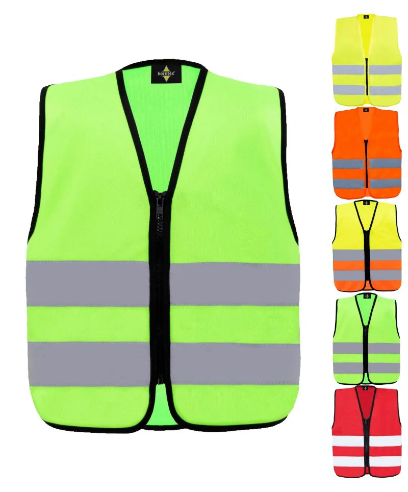 Popis: Bezpečnostná vesta pre deti v žiarivých farbách. Pohodlné nosenie vďaka 100% polyesterovej tkanine. Dva 5 cm široké reflexné pruhy pre zvýšenú viditeľnosť. Praktický zips pre ľahké obliekanie, vyzliekanie a bezpečné držanie. Rozsah veľkostí XXS – S (XXS = 3 – 4 roky, XS = 5 - 7 rokov, S = 8 - 10 rokov). HV žltá, HV oranžová, HV žltá/HV oranžová, HV zelená certifikované podľa EN 17353 2020 Type AB3, červená certifikované podľa EN 17353 2020 Type B3