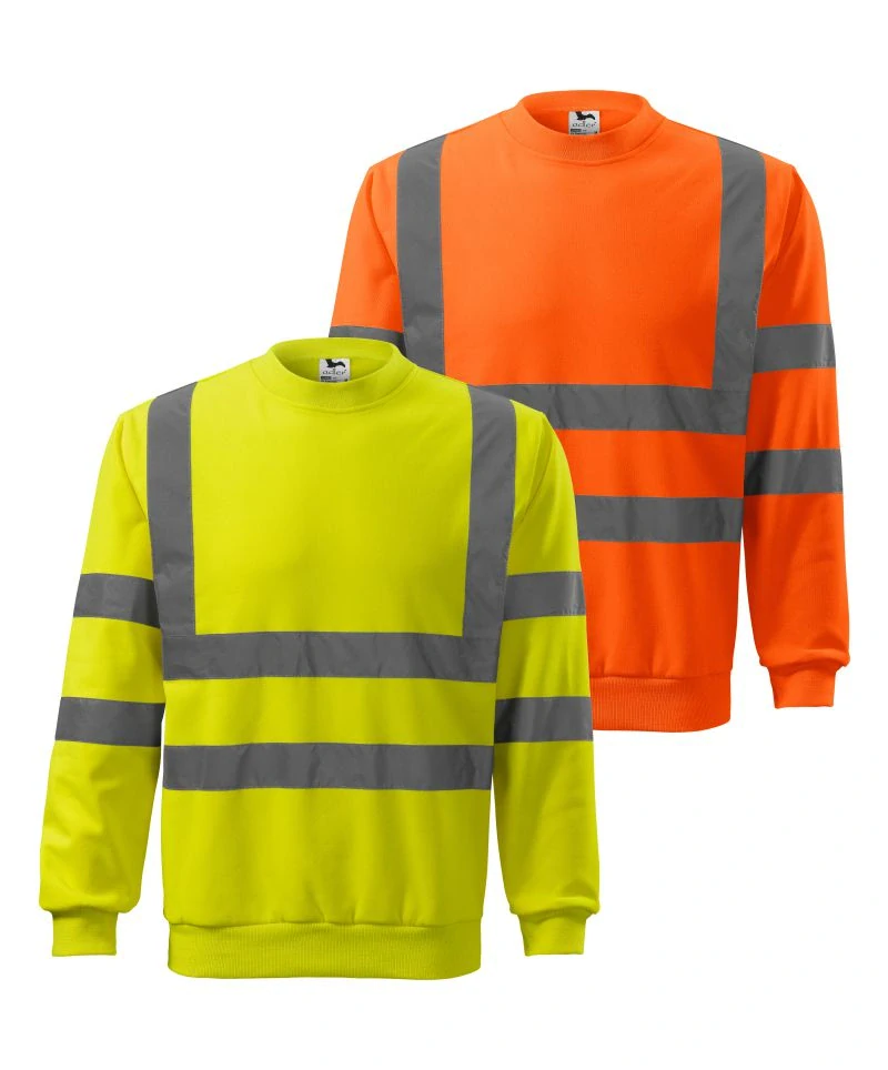 Popis: Odev s vysokou viditeľnosťou. Mikina z hladkého fluorescenčného materiálu s hlavicovým rukávom. Vnútorná strana počesaná. Spodný lem, manžety rukávov a lem priekrčníka zakončený lemom z rebrového úpletu 1:1. Použité certifikované retroreflexné pruhy výrobcu 3M. Certifikácia podľa noriem EN ISO 20471/A1 (trieda 3) a EN ISO 13688.